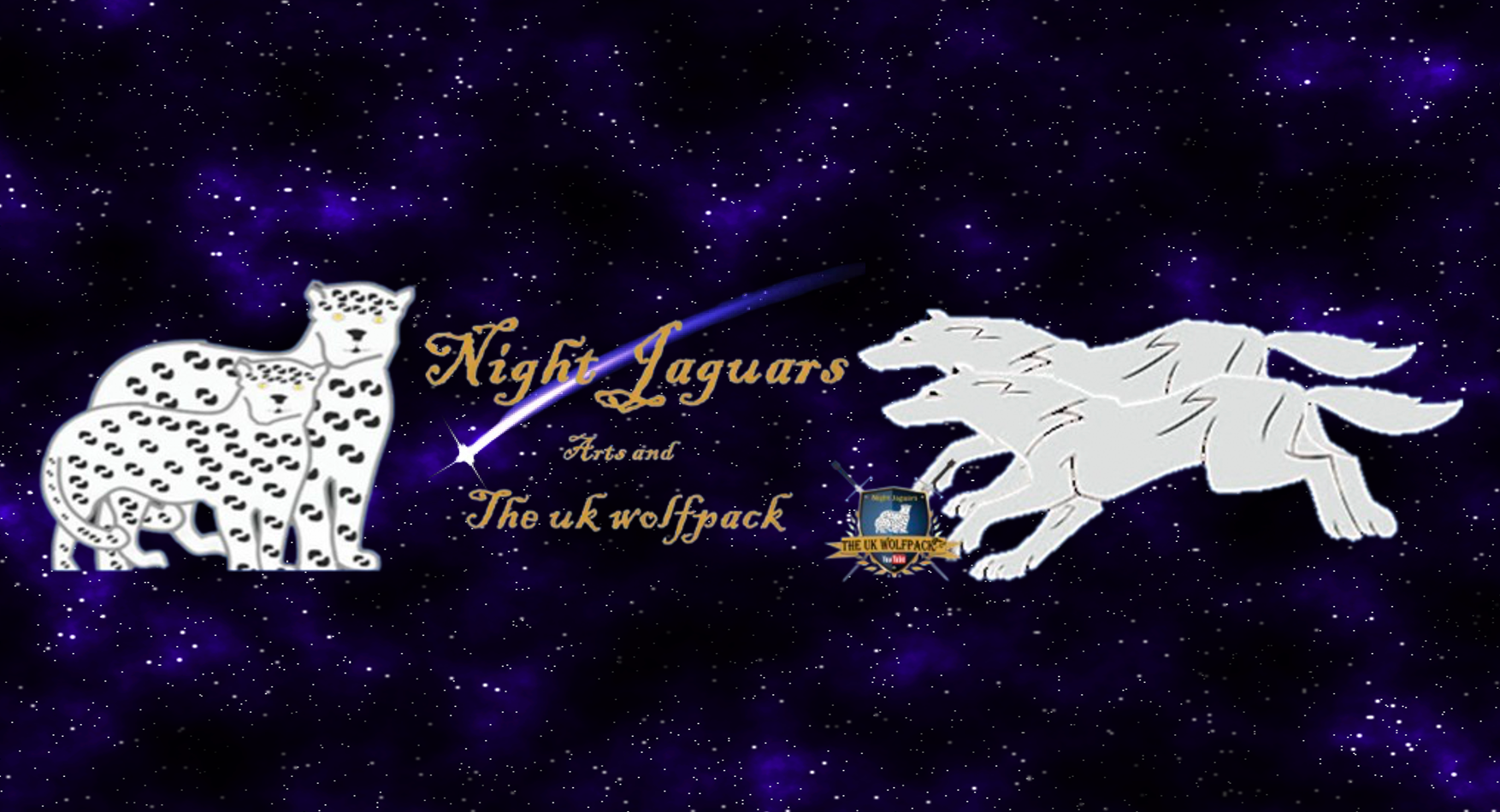 In 2023 The Uk Wolfpack shield as for the first time, ever, the UK Wolfpack has merged with another organisation Night Jaguars Arts however the uk Wolfpack will be keeping the Same traditional name but I also hold a secondary name Night Jaguars as the Wolf and the Jaguar come together as one.